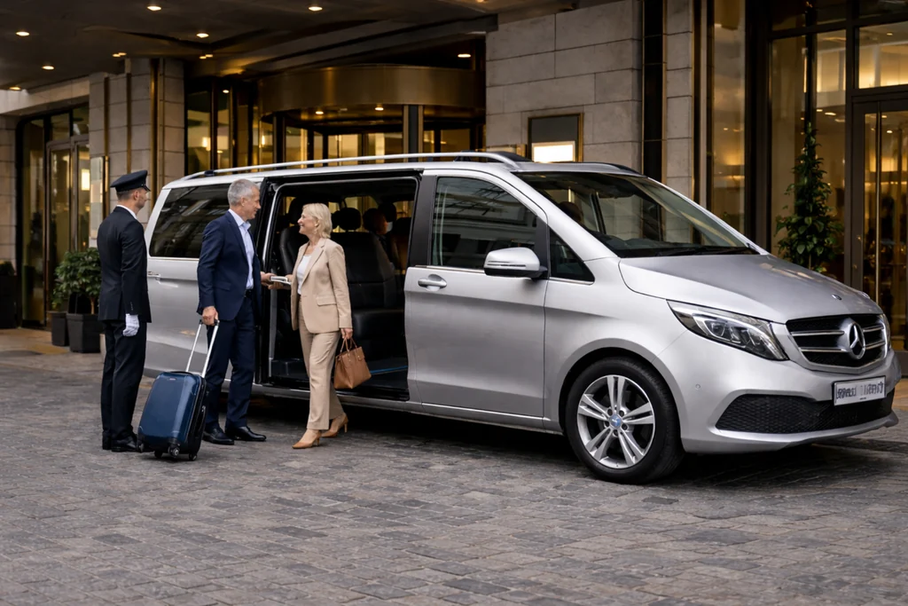 Our fleet includes executive saloon cars and spacious MPVs, including Mercedes-Benz V-Class vehicles with generous room for passengers and luggage.